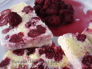 Oh, des framboises du jardin à volonté, quelle chance !!! Faut que je refasse de la glace au fromage blanc, sans belles framboises…