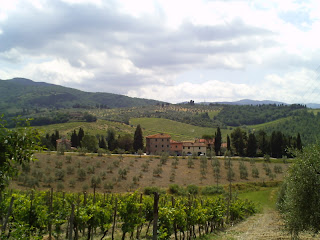 La campagne traversée de cyprès, au loin des maisons aux couleurs jaunes et ocres, puis des lacs d’un bleu profond entourés de montagnes.