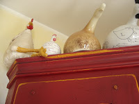 Ma collection de poules… elles veillent au grain de là-haut… et la petite vache, c’est une tirelire, mais il n’y a même pas dedans m’acheter le dernier robot à la mode.