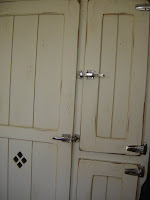 Derrière ce meuble réalisé à l’identique des glacières d’autrefois se cachent, côté porte de gauche le réfrigérateur, et côté porte de droite des étagères profondes pour ranger les marmites, cocottes, saladiers etc… puis le fourneau de cuisine… une série de casseroles en cuivres pendent, elles ne sont pas là que pour la déco, je les utilise régulièrement quand je reçois des amis…