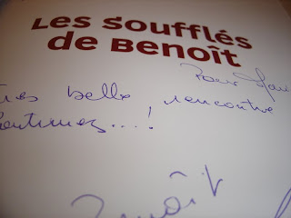 Et bien on parcourt avec gourmandise « les 80 recettes inratables d’un chef astucieux » à savoir Benoît Molin et ses délicieuses variations de soufflés… livre généreusement offert et dédicacé – s’il-vous-plait – par l’auteur lui-même lors de la première édition du salon des blogs culinaires à Soissons.