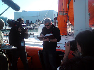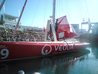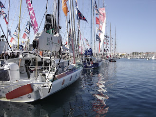 Nous avons pu admirer tous les voiliers prêts à prendre le départ le 9 novembre prochain et même apercevoir Vincent Riou en train de graver son empreinte de main.