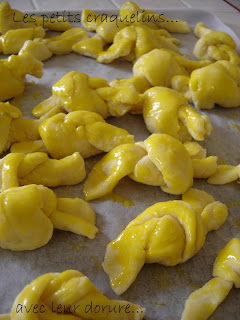 Chez nous, en Belgique, ils sont façonnés en forme de pain (rond ou carré) et on met du sucre perlé dans la pâte.