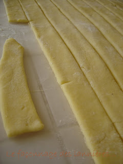 Détaillez des lanières de 2 cm de large et 12 cm de long. Arrondissez ces lanières en forme de boudin puis nouez-les individuellement.