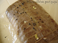 Eric avait indiqué 1 h 30 mais je ne sais pas combien pesait son rôti, j’ai laissé un quart d’heure de plus car en ouvrant la porte pour vérifier, je n’étais pas trop sûre que ce soit cuit.