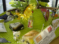Qu’est-ce que je peux vous dire d’autre ? Hé bien c’est que sur le chapeau d’Angelina il y avait plein de petits objets que chacun d’entre nous avait amenés et qui la représentait dans sa vie quotidienne ; alors, en résumé, Angelina : elle adore la vodka-caramel, tous les matins elle se mange un petit pain au chocolat, elle a un petit chat dont elle est folle, elle apprécie beaucoup le parfum Angel… et puis… j’arrête, je vais me faire lyncher… certains objets ne peuvent pas être décrits sur cette page !