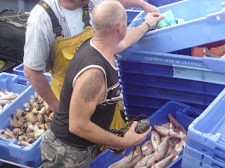 L’arrivée des bateaux de pêche sur le port de l’Ile d’Yeu : pinces de tourteaux, rougets et surtout magnifiques homards bleus encore vivants nous sourient au ventre, mais difficile d’en ramener car nous passons la journée sur l’Ile et n’avons pas de moyen de conservation…